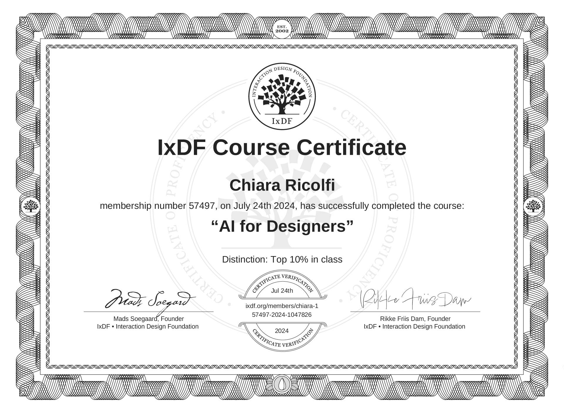 Chiara Ricolfi's IxDF Course Certificate: AI for Designers