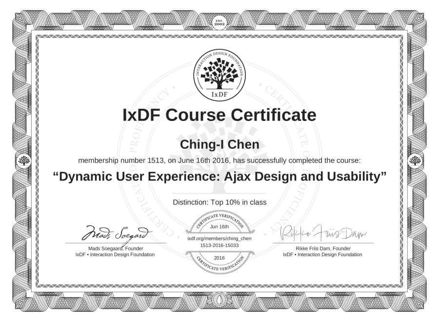 Ching-I Chen's IxDF Course Certificate: Dynamic User Experience: Ajax Design and Usability
