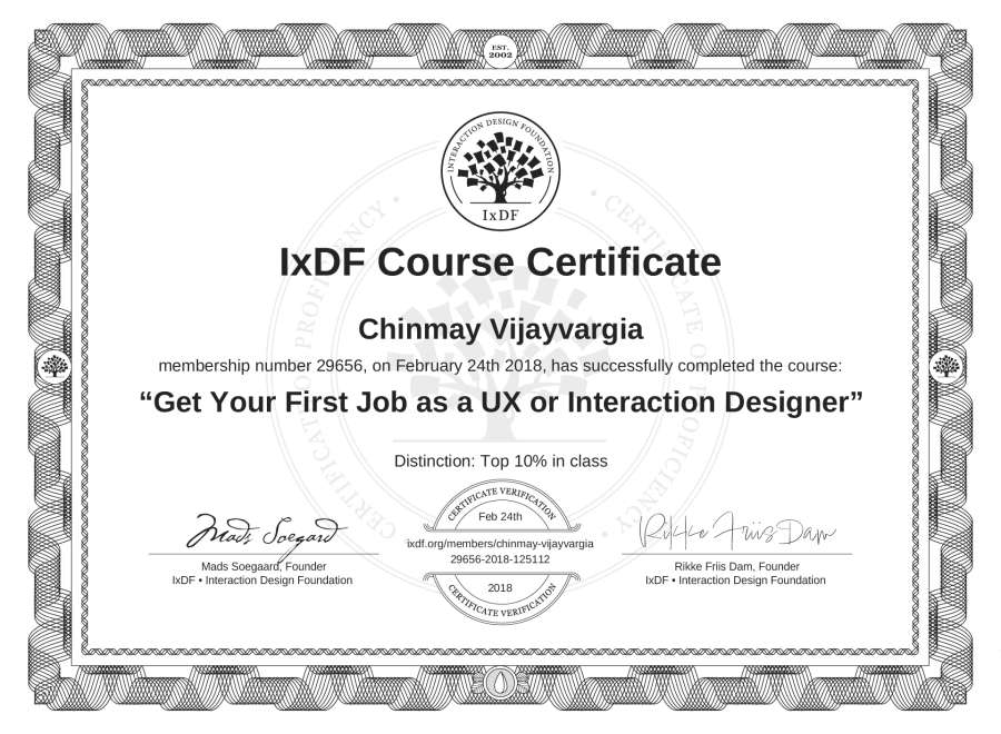 Chinmay Vijayvargia's IxDF Course Certificate: Get Your First Job as a UX or Interaction Designer