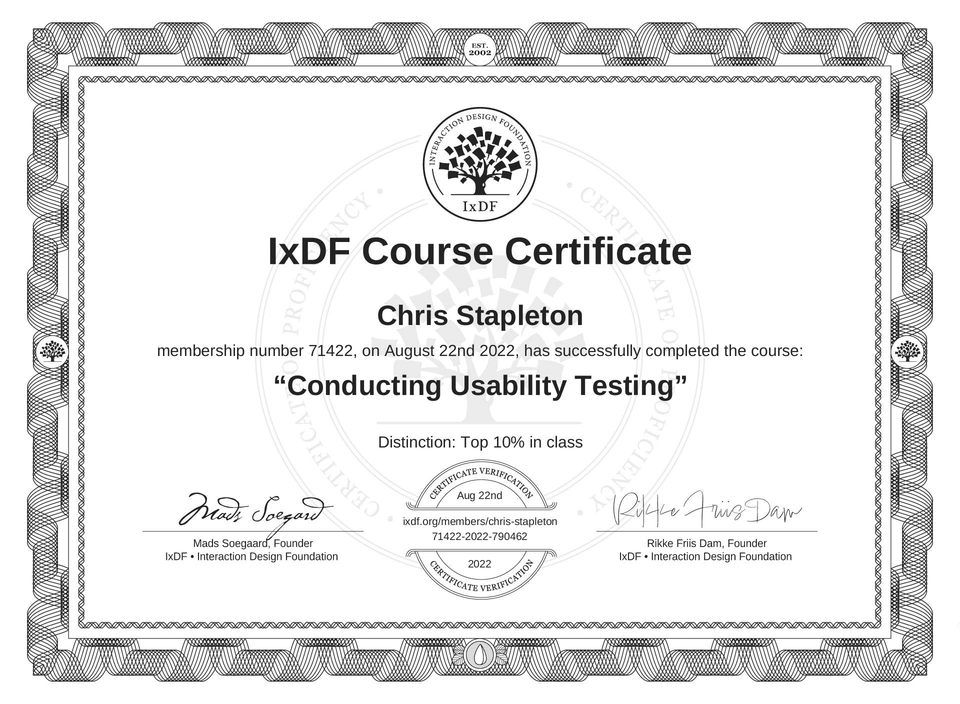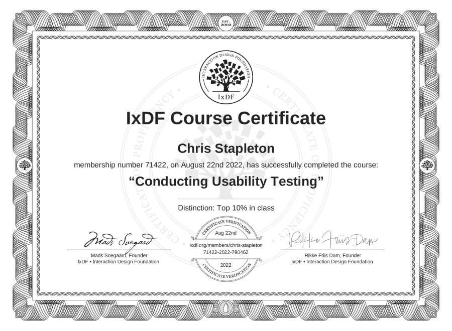 Chris Stapleton's IxDF Course Certificate: Conducting Usability Testing