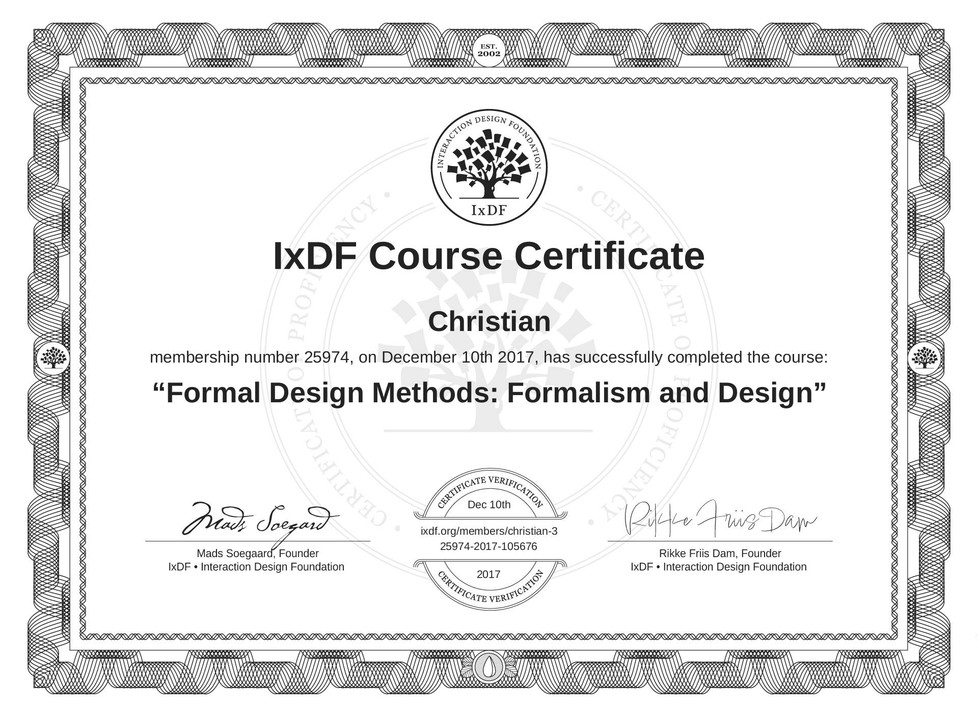 Christian's IxDF Course Certificate: Formal Design Methods: Formalism and Design