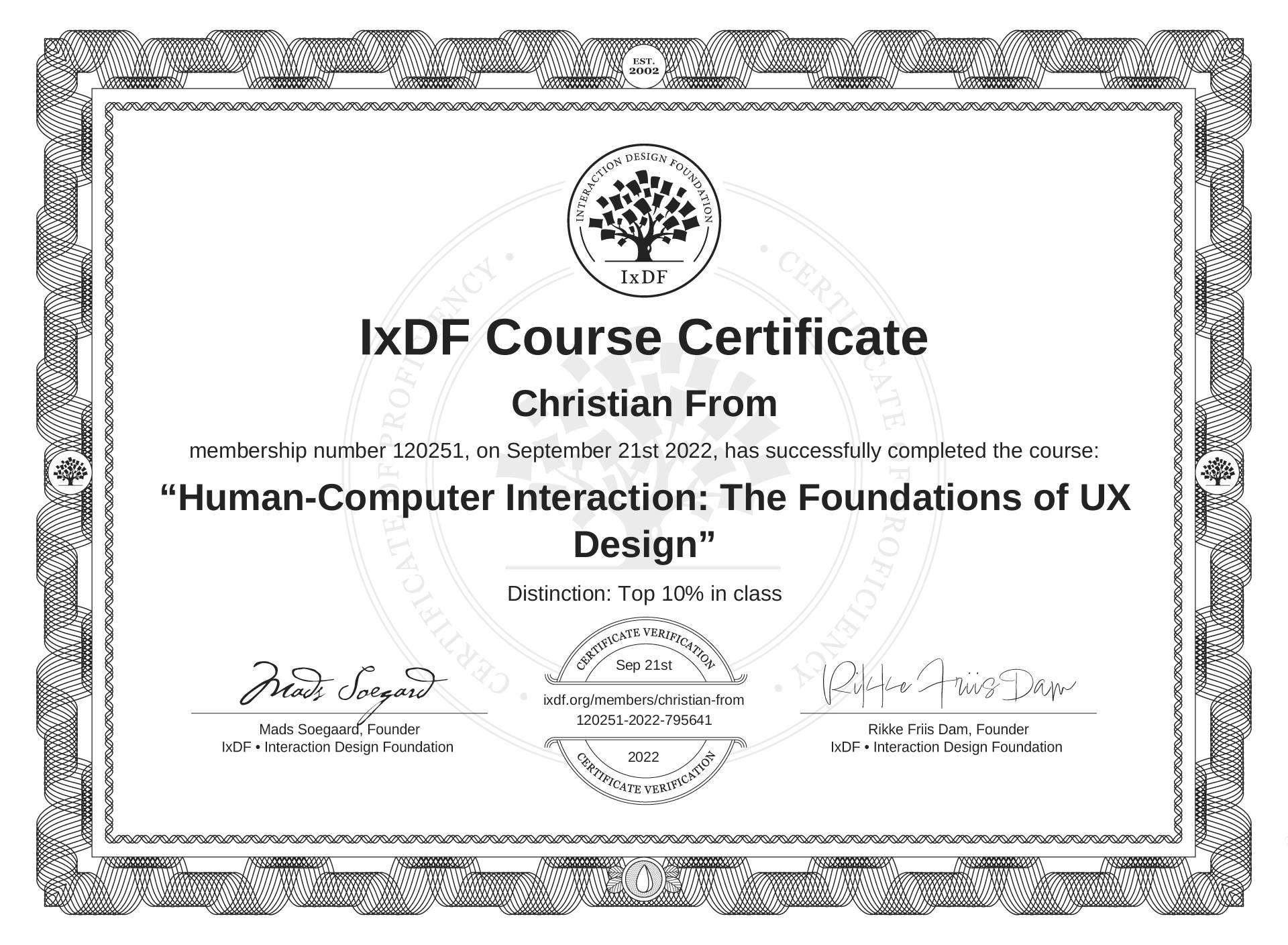 Christian From's IxDF Course Certificate: Human-Computer Interaction: The Foundations of UX Design
