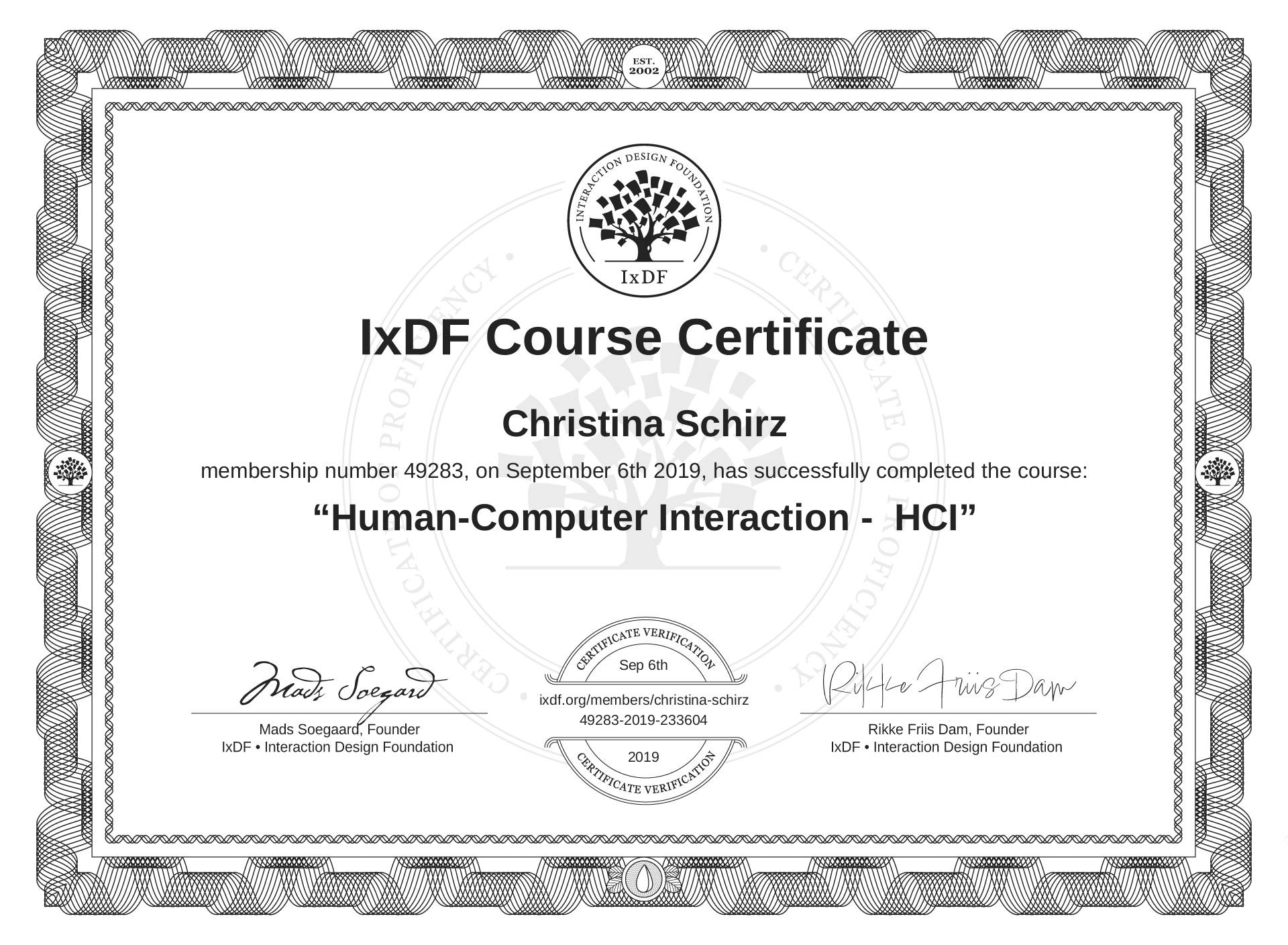 Christina Schirz's IxDF Course Certificate: Human-Computer Interaction - HCI