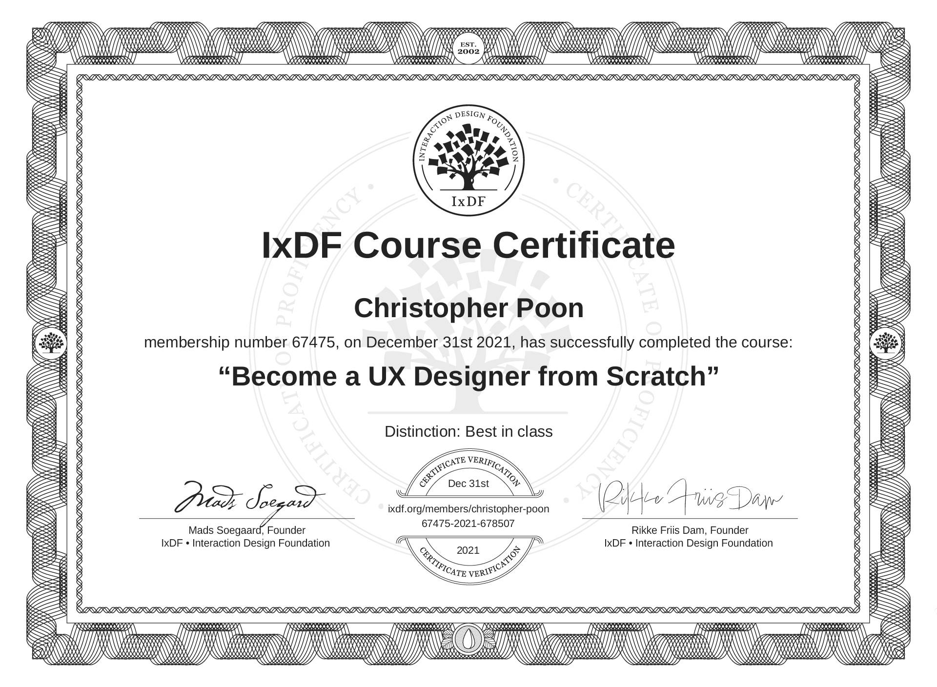 Christopher Poon's IxDF Course Certificate: Become a UX Designer from Scratch
