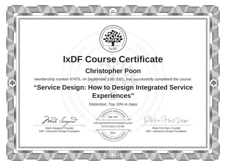 Christopher Poon's IxDF Course Certificate: Service Design: How to Design Integrated Service Experiences