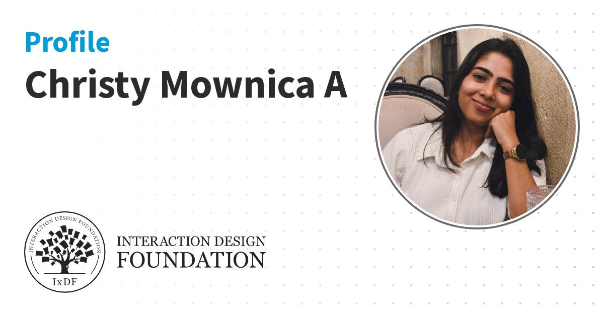 IxDF Course Certificates are awarded to Christy Mownica A in formal recognition of their coursework surpassing the rigorous benchmarks of exceptional performance established by the IxDF Educational Codex.