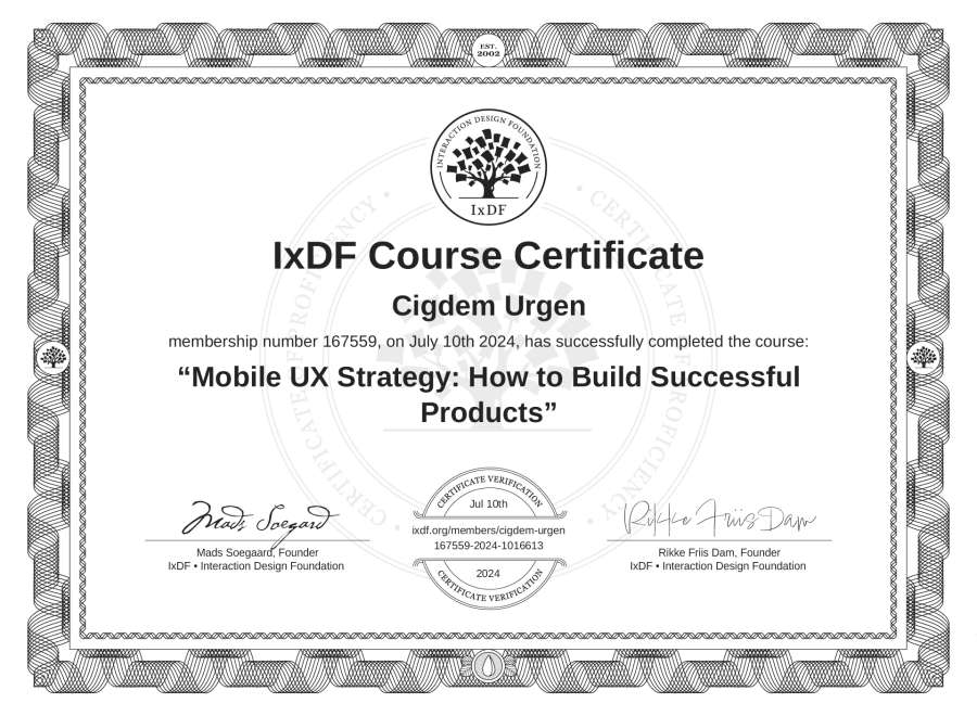 Çiğdem Ürgen's IxDF Course Certificate: Mobile UX Strategy: How to Build Successful Products