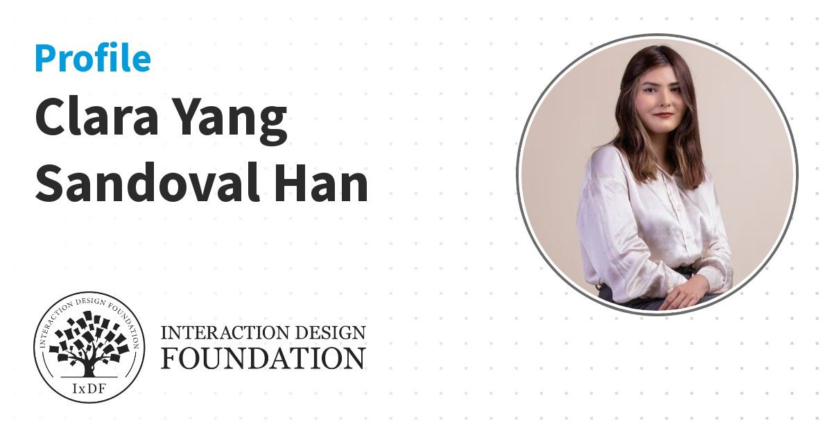 IxDF Course Certificates are awarded to Clara Yang Sandoval Han in formal recognition of their coursework surpassing the rigorous benchmarks of exceptional performance established by the IxDF Educational Codex.
