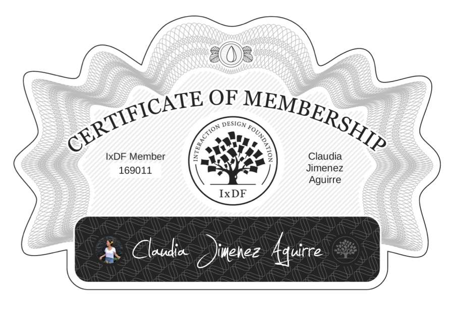 Claudia Jimenez Aguirre: IxDF Membership Certificate