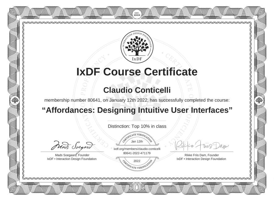 Claudio Conticelli's IxDF Course Certificate: Affordances: Designing Intuitive User Interfaces