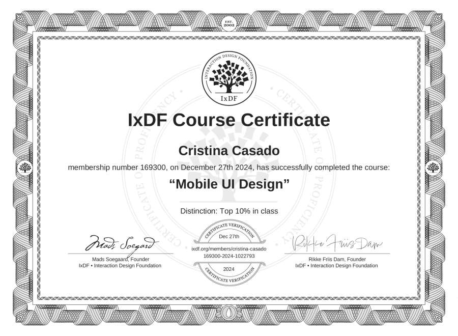 Cristina Casado's IxDF Course Certificate: Mobile UI Design