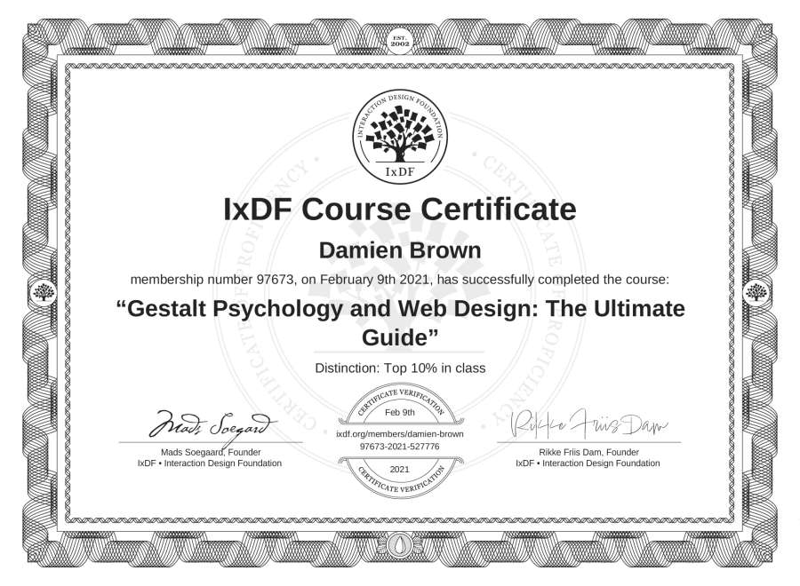 Damien Brown's IxDF Course Certificate: Gestalt Psychology and Web Design: The Ultimate Guide