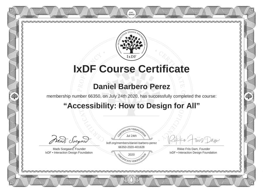 Daniel Barbero Pérez's IxDF Course Certificate: Accessibility: How to Design for All