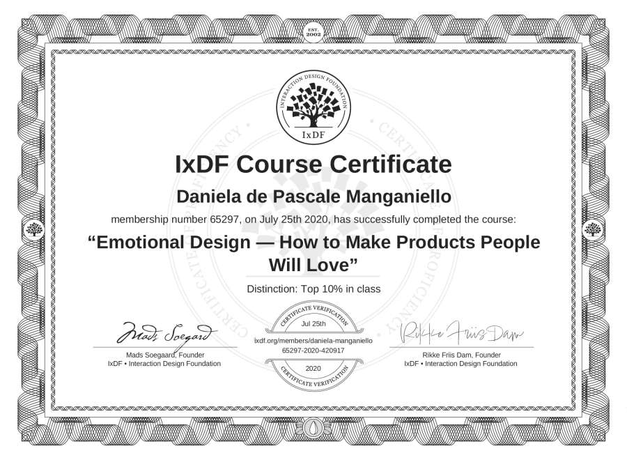 Daniela de Pascale Manganiello's IxDF Course Certificate: Emotional Design — How to Make Products People Will Love