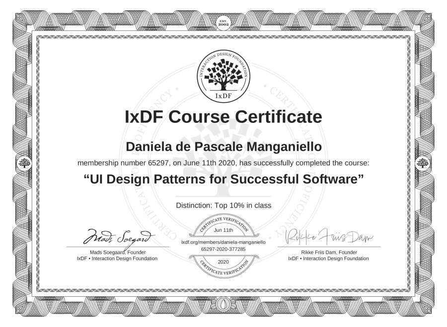 Daniela de Pascale Manganiello's IxDF Course Certificate: UI Design Patterns for Successful Software