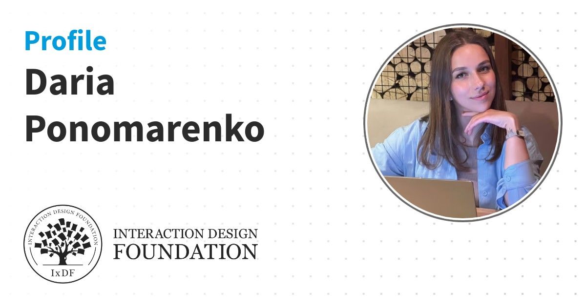 This IxDF Membership Certificate is issued to Daria Ponomarenko in formal recognition of their membership of the IxDF, global leader in design education.