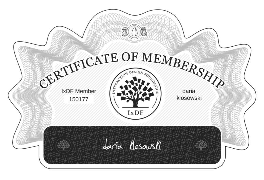 Page URL: https://www.interaction-design.org/members/daria-klosowski/certificate/membership/mc_t1x3pft4s