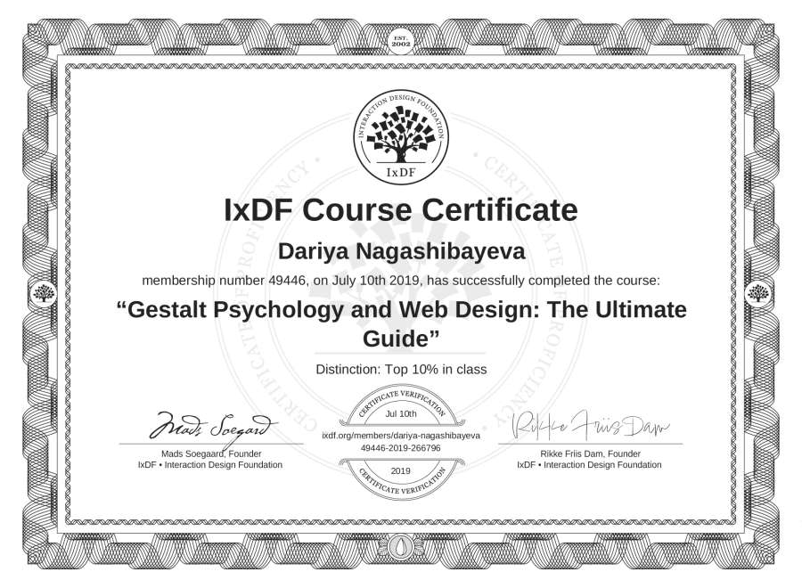 Dariya Nagashibayeva's IxDF Course Certificate: Gestalt Psychology and Web Design: The Ultimate Guide