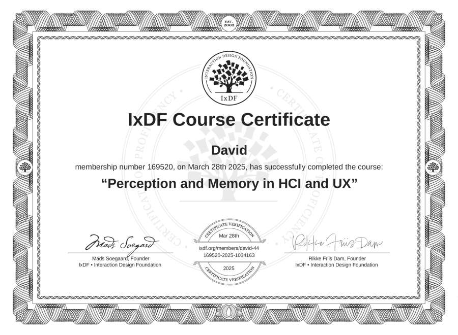David's IxDF Course Certificate: Perception and Memory in HCI and UX