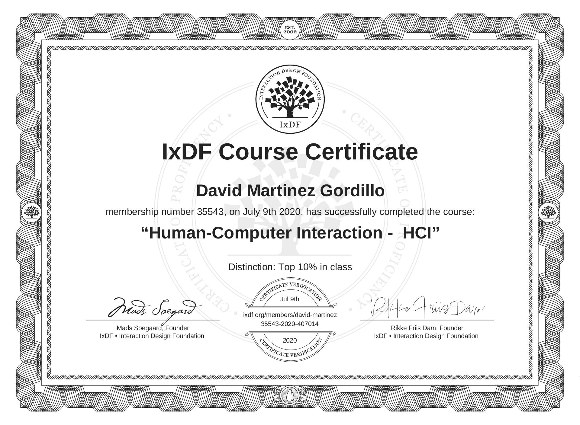 David Martinez Gordillo's IxDF Course Certificate: Human-Computer Interaction - HCI