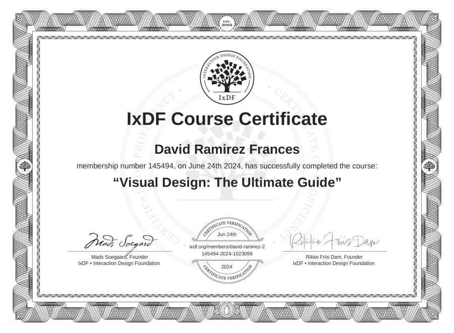 David Ramírez Francés's IxDF Course Certificate: Visual Design: The Ultimate Guide