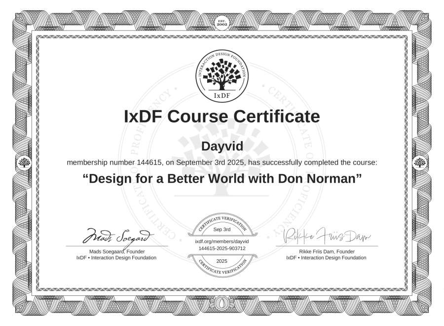 Dayvid's IxDF Course Certificate: Design for a Better World with Don Norman