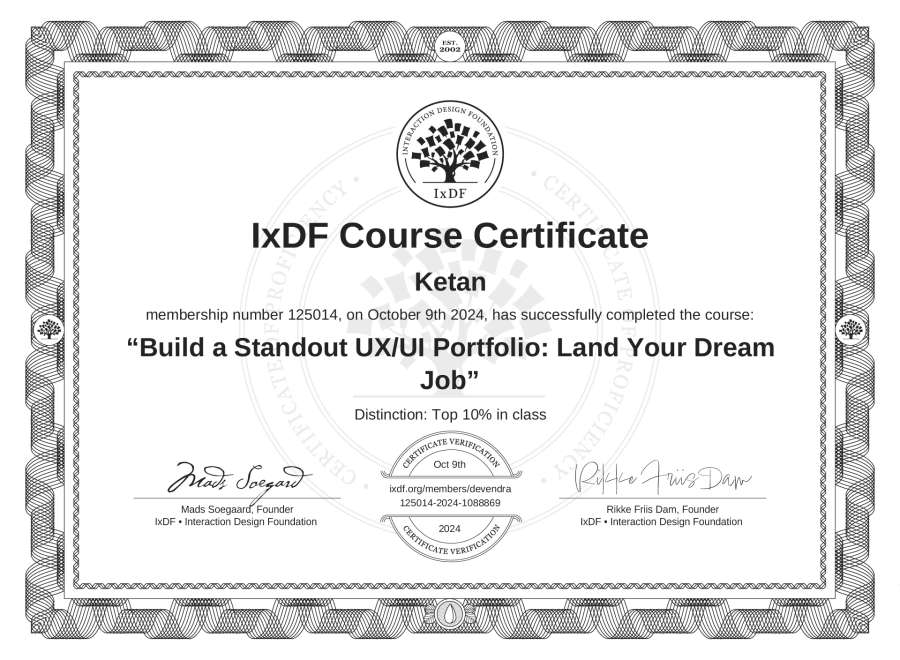 Ketan's IxDF Course Certificate: Build a Standout UX/UI Portfolio: Land Your Dream Job