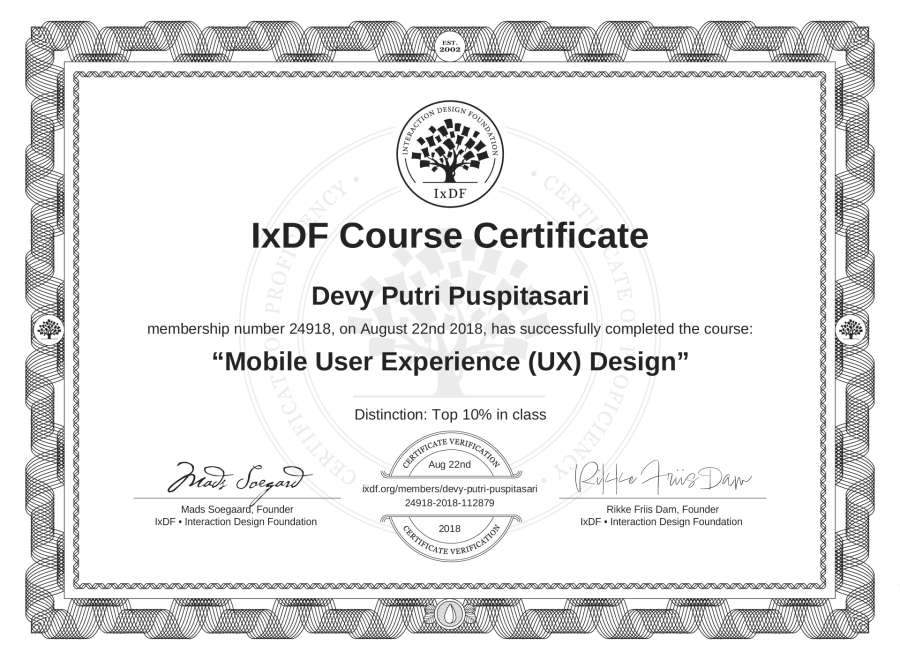 Devy Putri Puspitasari's IxDF Course Certificate: Mobile User Experience (UX) Design