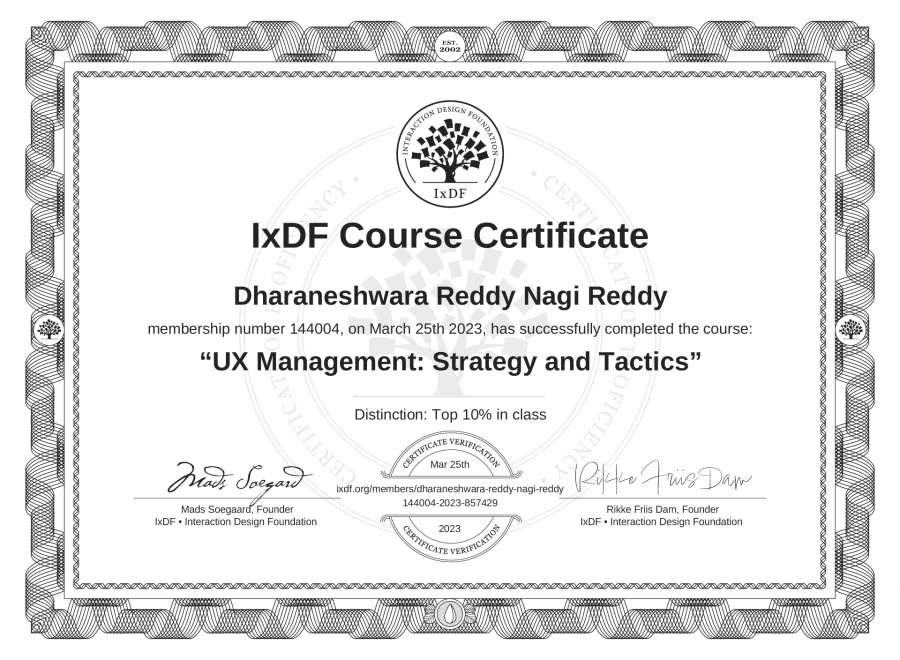 Dharaneshwara Reddy Nagi Reddy's IxDF Course Certificate: UX Management: Strategy and Tactics