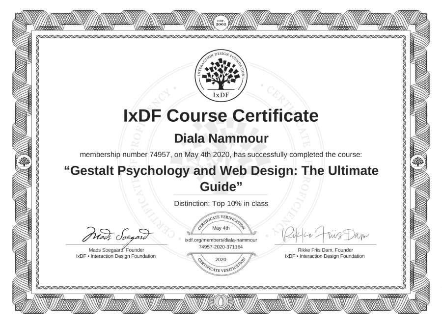Diala Nammour's IxDF Course Certificate: Gestalt Psychology and Web Design: The Ultimate Guide
