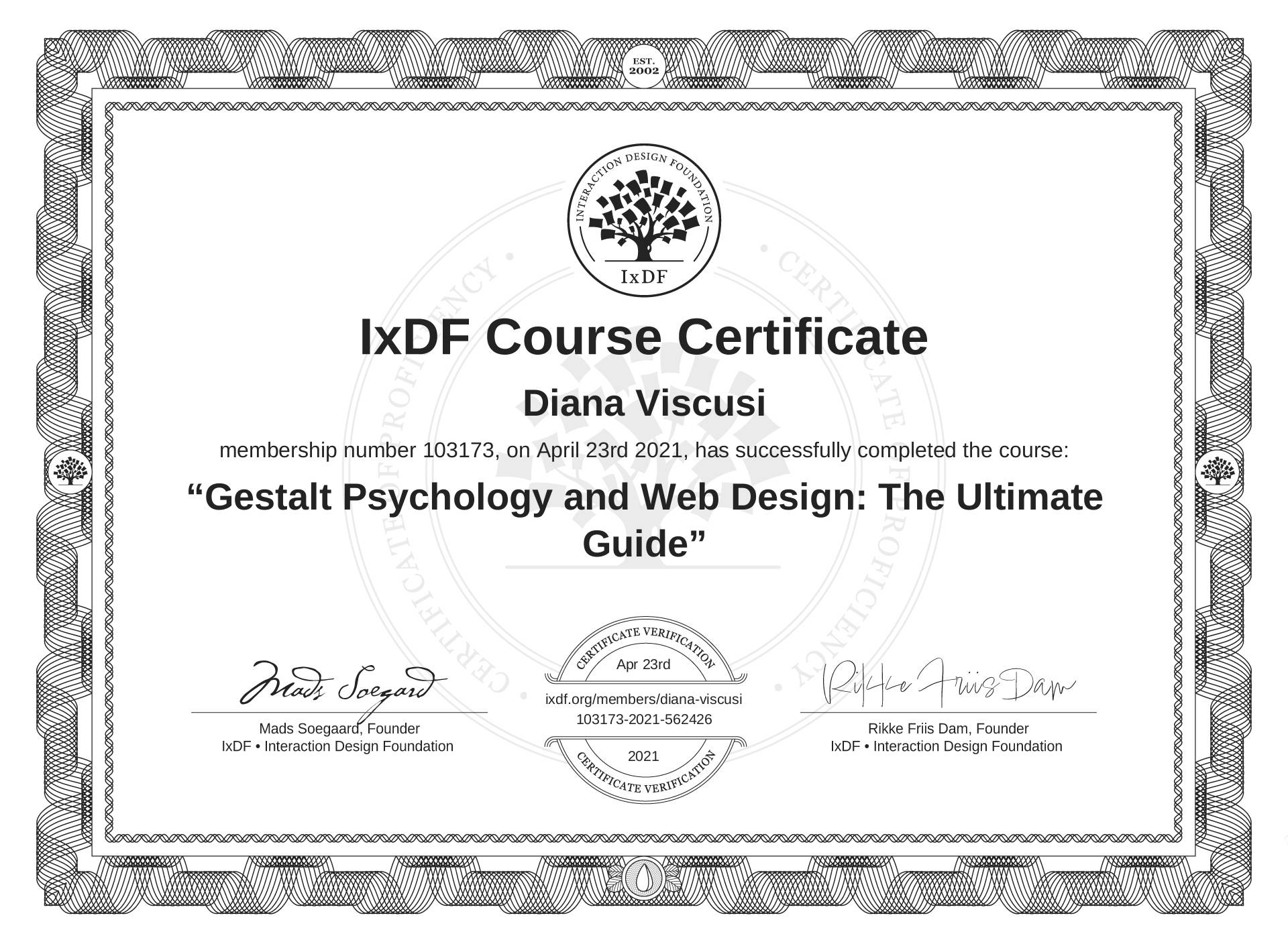 Diana Viscusi's IxDF Course Certificate: Gestalt Psychology and Web Design: The Ultimate Guide