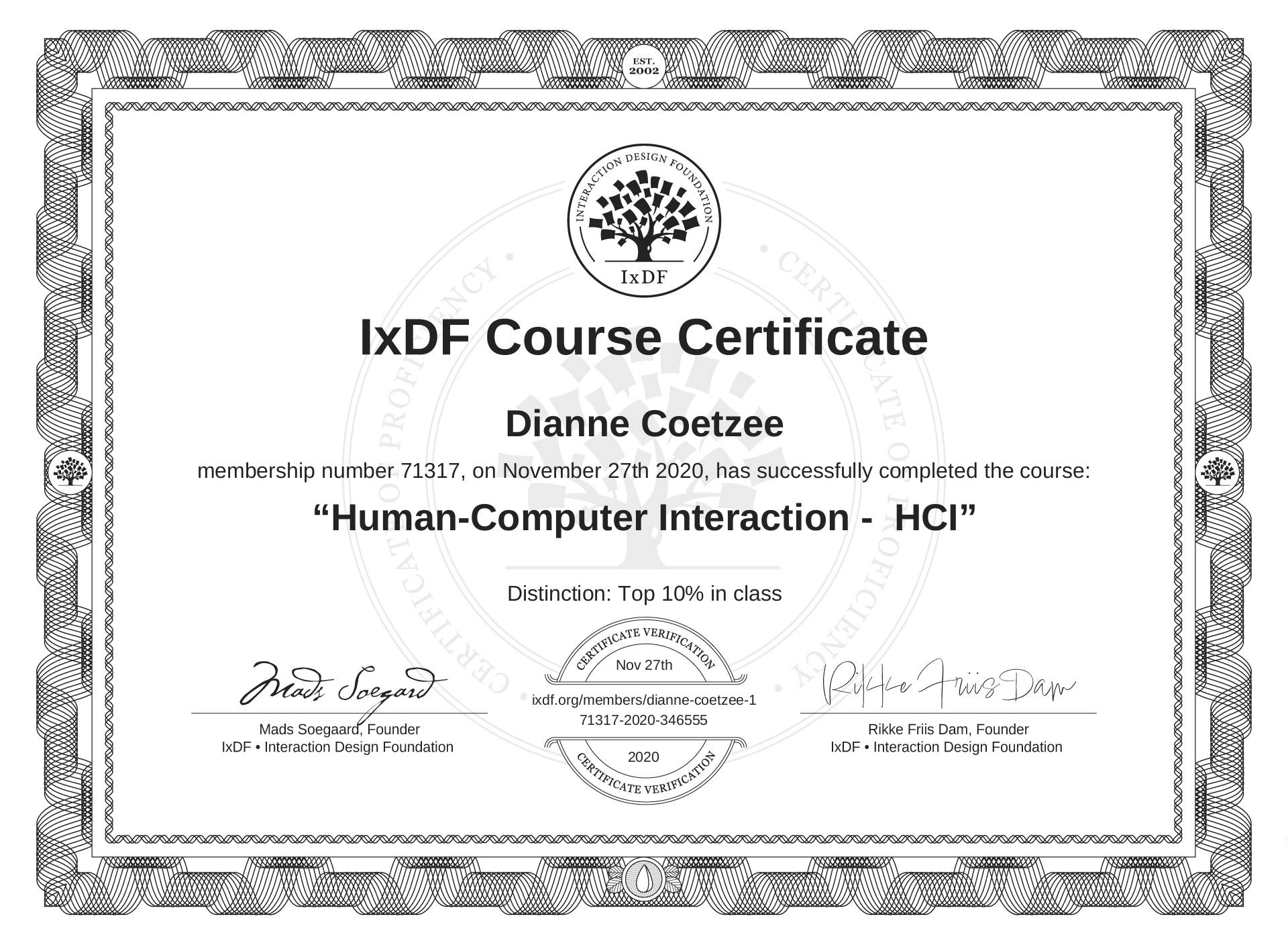 Dianne Coetzee's IxDF Course Certificate: Human-Computer Interaction - HCI