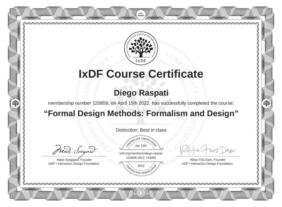 Diego Raspati's IxDF Course Certificate: Formal Design Methods: Formalism and Design