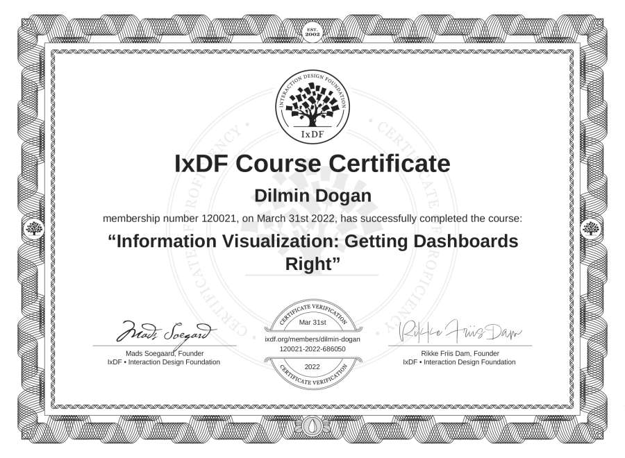 Dilmin Doğan's IxDF Course Certificate: Information Visualization: Getting Dashboards Right