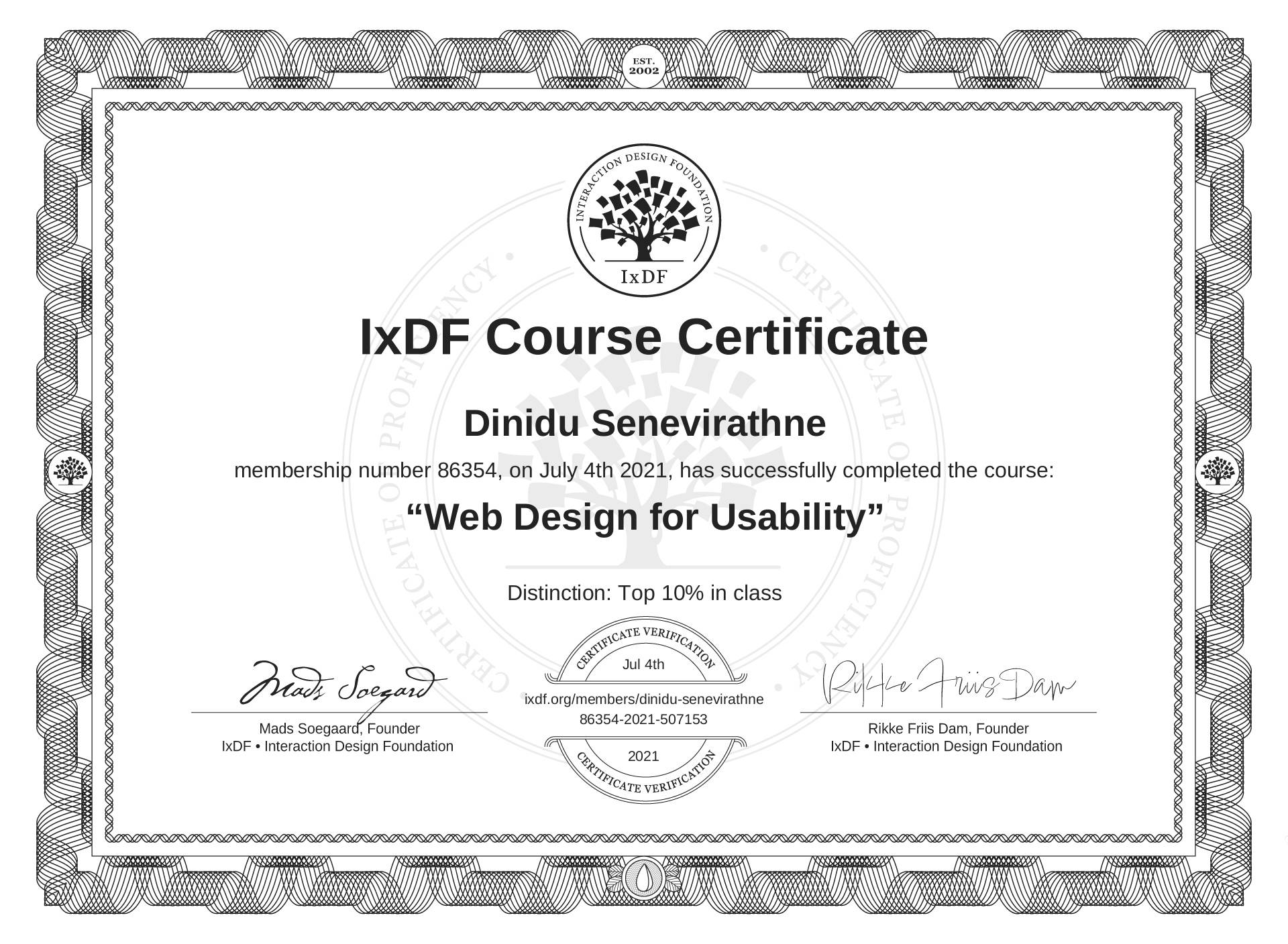 Dinidu Senevirathne's IxDF Course Certificate: Web Design for Usability