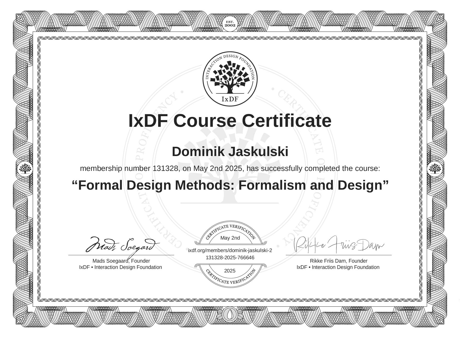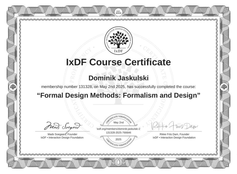 Dominik Jaskulski's IxDF Course Certificate: Formal Design Methods: Formalism and Design