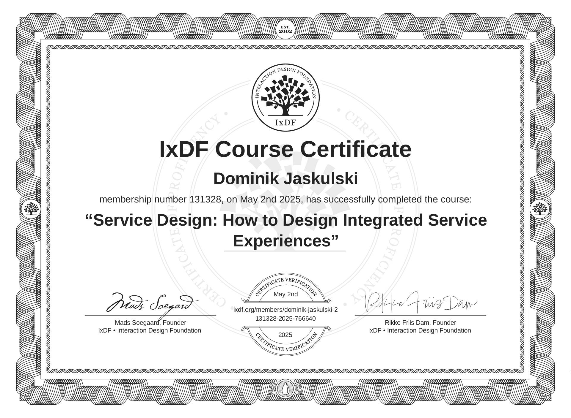 Dominik Jaskulski's IxDF Course Certificate: Service Design: How to Design Integrated Service Experiences