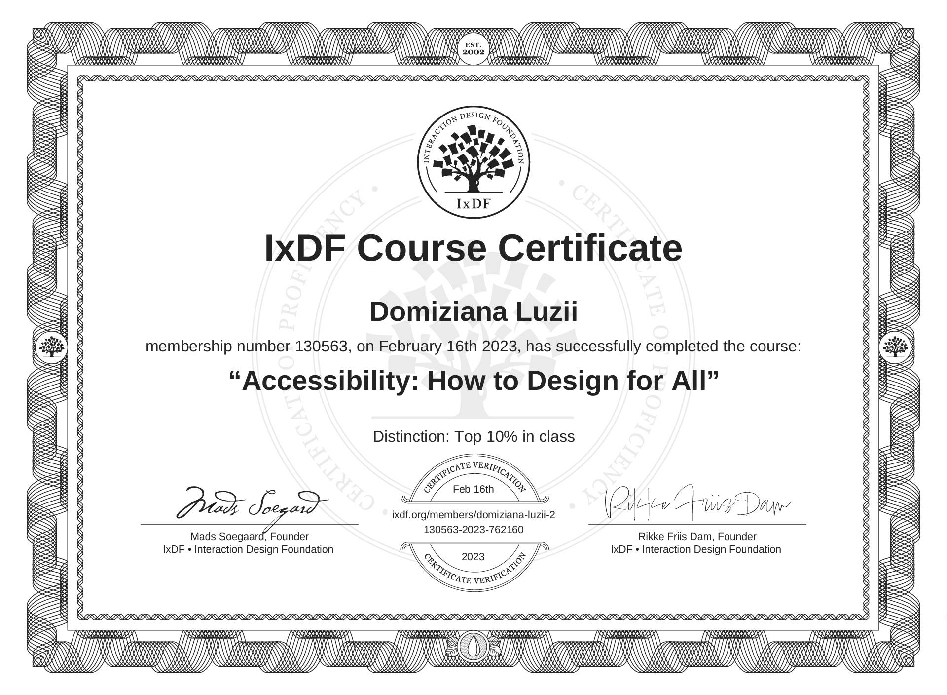 Domiziana Luzii's IxDF Course Certificate: Accessibility: How to Design for All