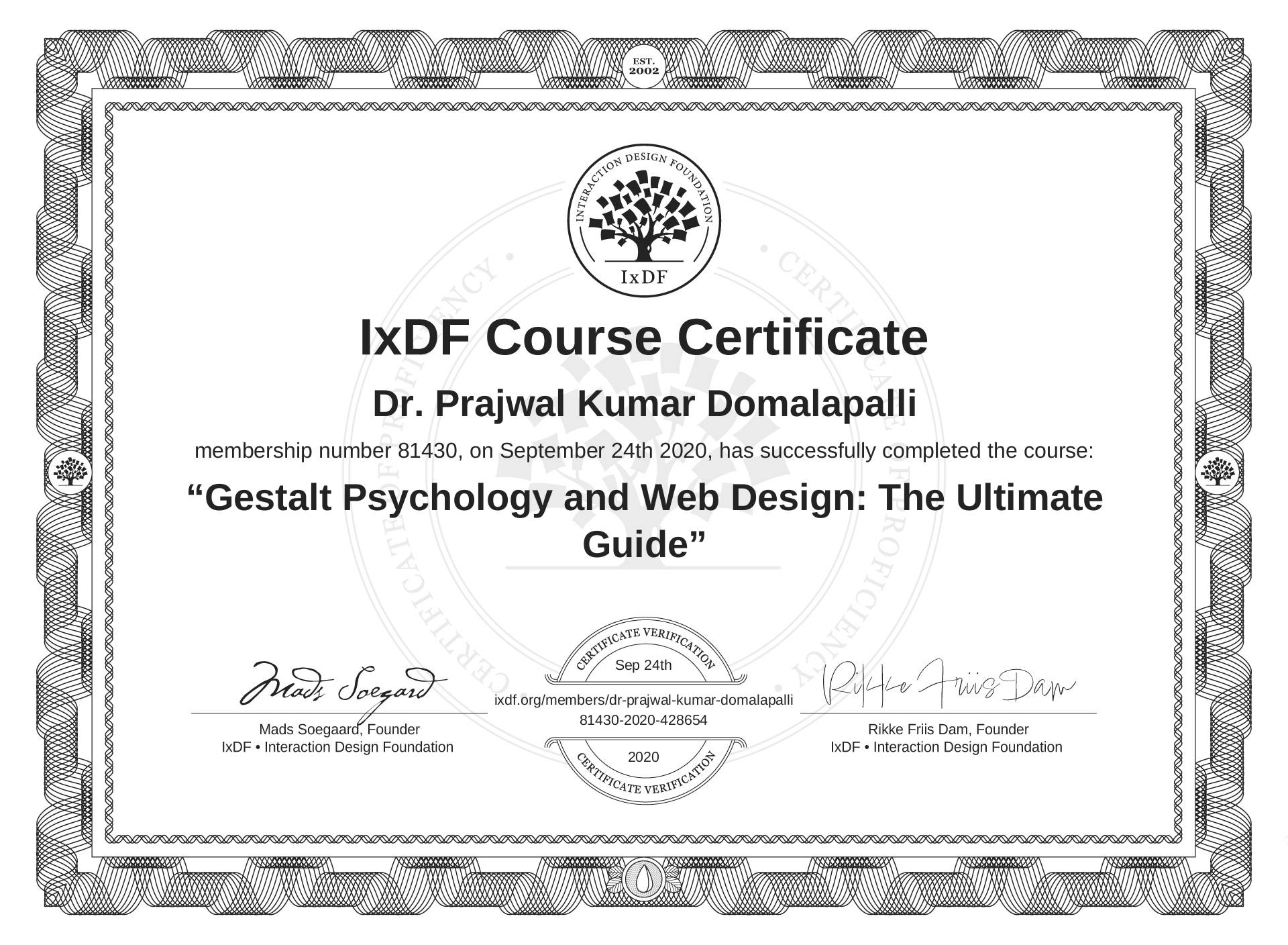 Dr. Prajwal Kumar Domalapalli's IxDF Course Certificate: Gestalt Psychology and Web Design: The Ultimate Guide