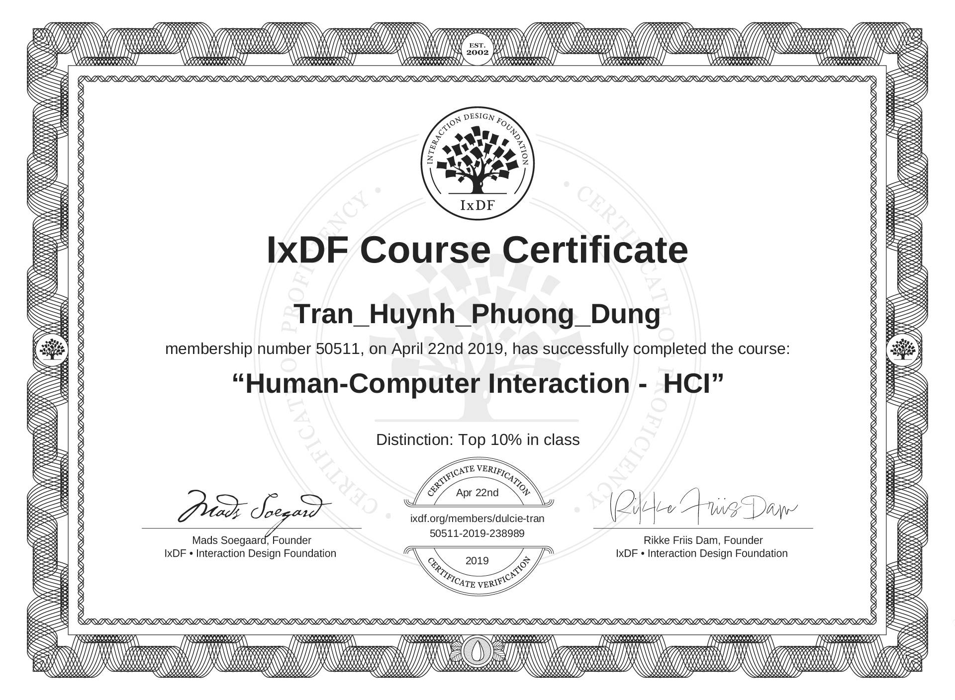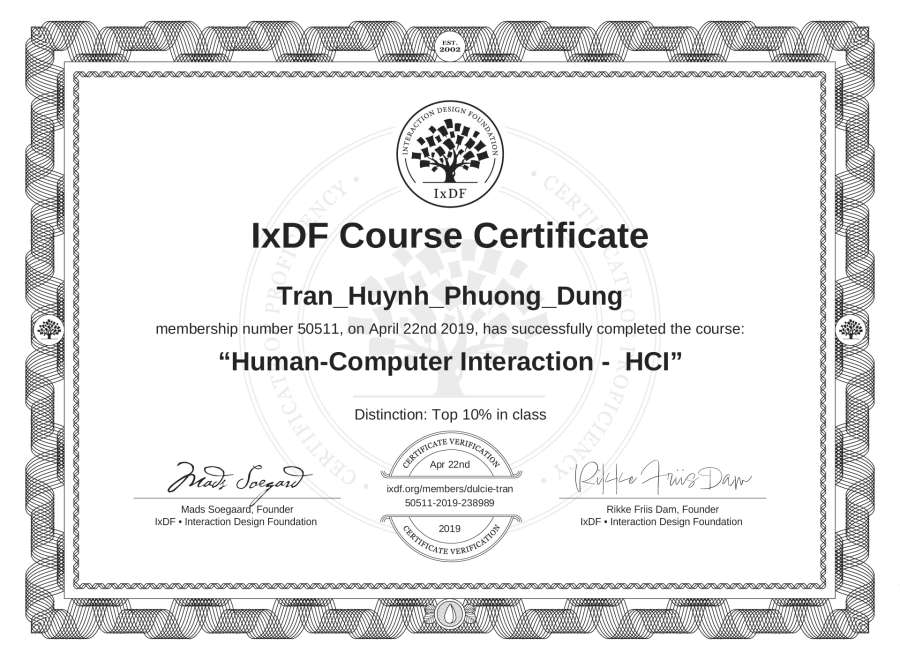 Tran_Huynh_Phuong_Dung's IxDF Course Certificate: Human-Computer Interaction - HCI