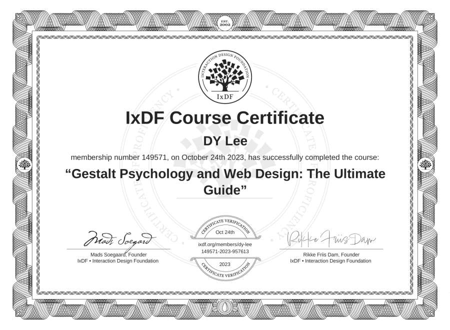 DY Lee's IxDF Course Certificate: Gestalt Psychology and Web Design: The Ultimate Guide