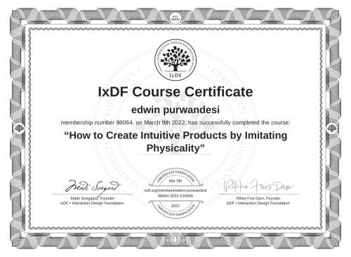 IxDF Course Certificates are awarded to edwin purwandesi in formal recognition of their coursework surpassing the rigorous benchmarks of exceptional performance established by the IxDF Educational Codex.