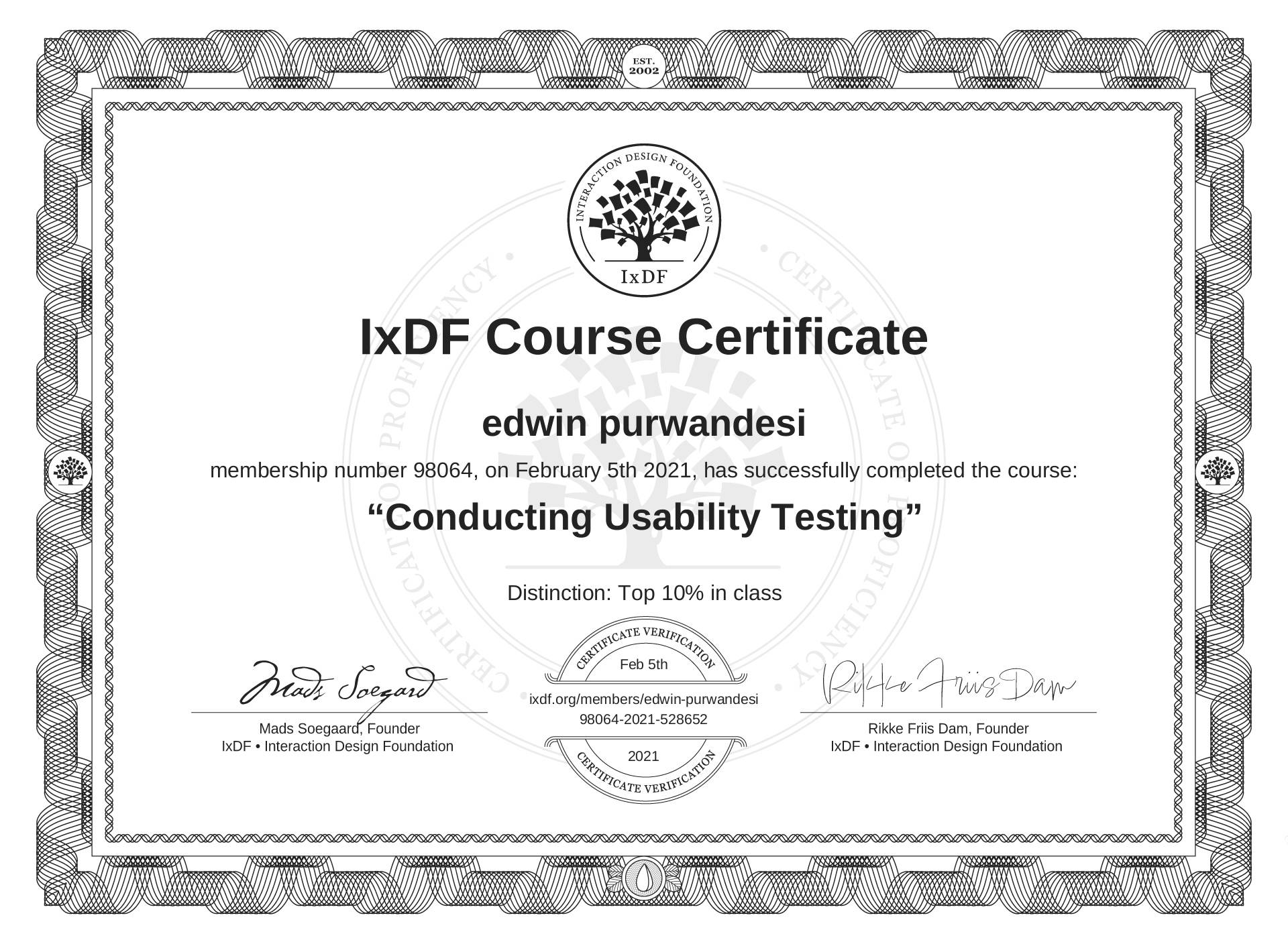 edwin purwandesi's IxDF Course Certificate: Conducting Usability Testing