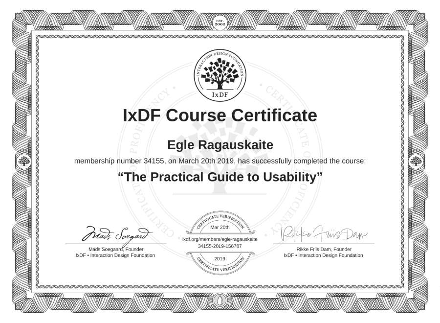 Egle Ragauskaite's IxDF Course Certificate: The Practical Guide to Usability