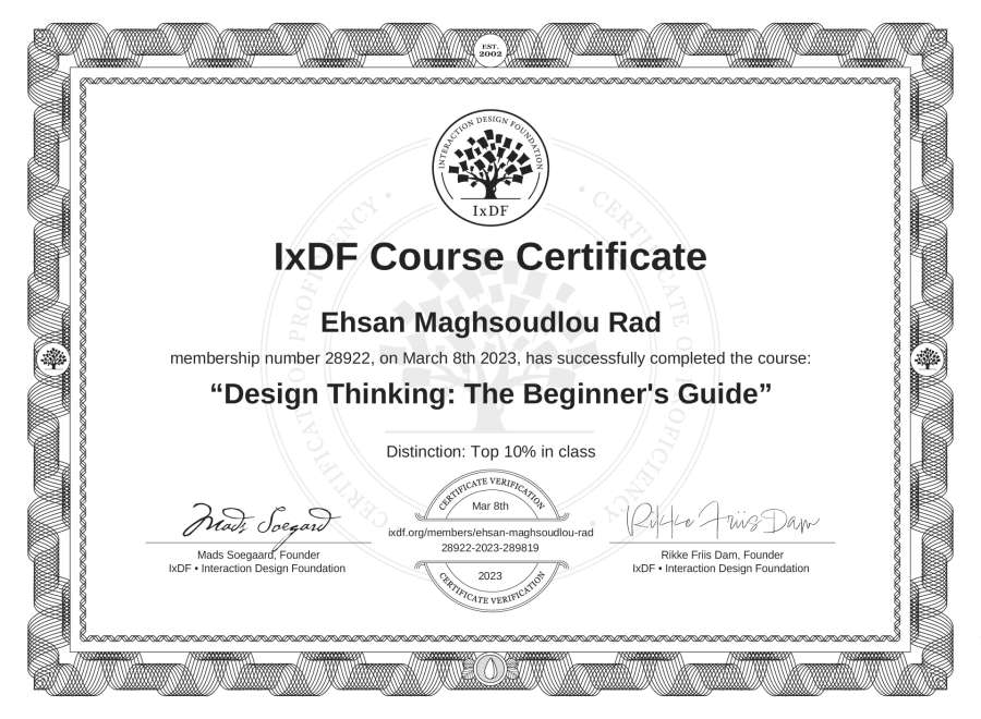 Ehsan Maghsoudlou Rad's IxDF Course Certificate: Design Thinking: The Beginner's Guide
