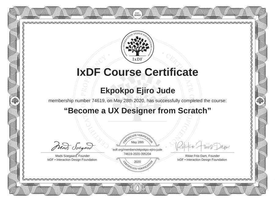 Ekpokpo Ejiro Jude's IxDF Course Certificate: Become a UX Designer from Scratch