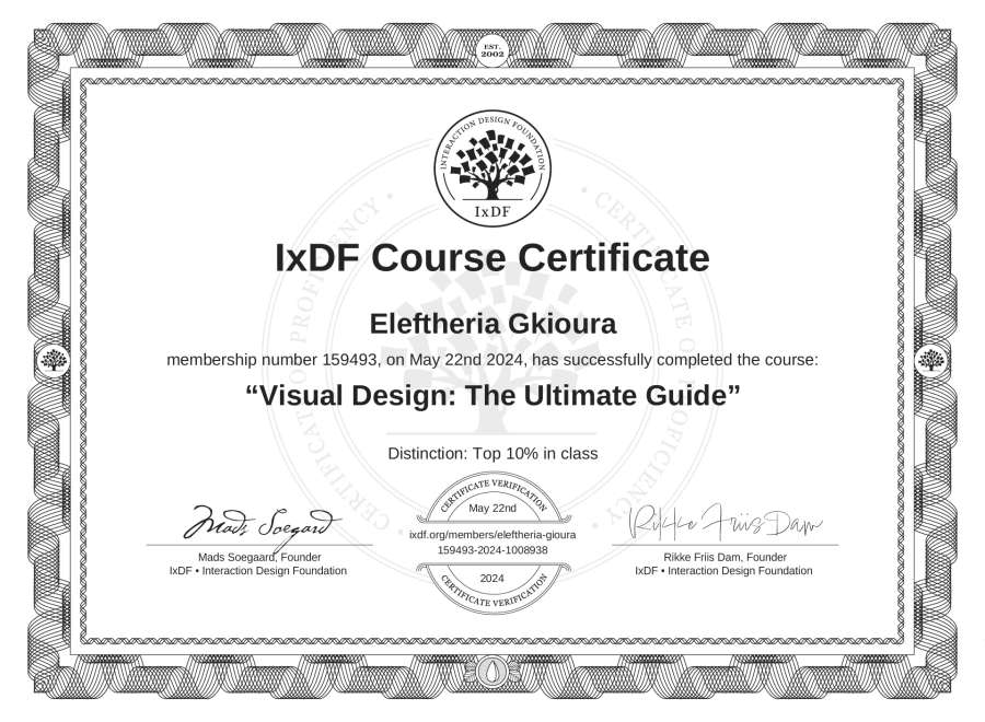 Eleftheria Gkioura's IxDF Course Certificate: Visual Design: The Ultimate Guide
