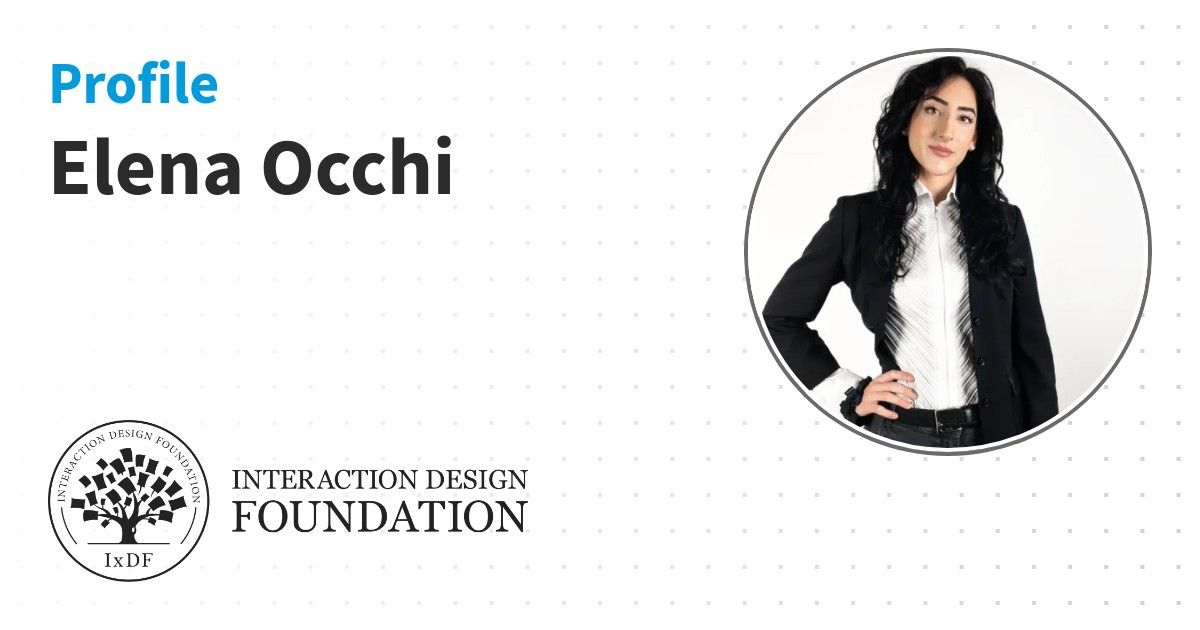 IxDF Course Certificates are awarded to Elena Occhi in formal recognition of their coursework surpassing the rigorous benchmarks of exceptional performance established by the IxDF Educational Codex.