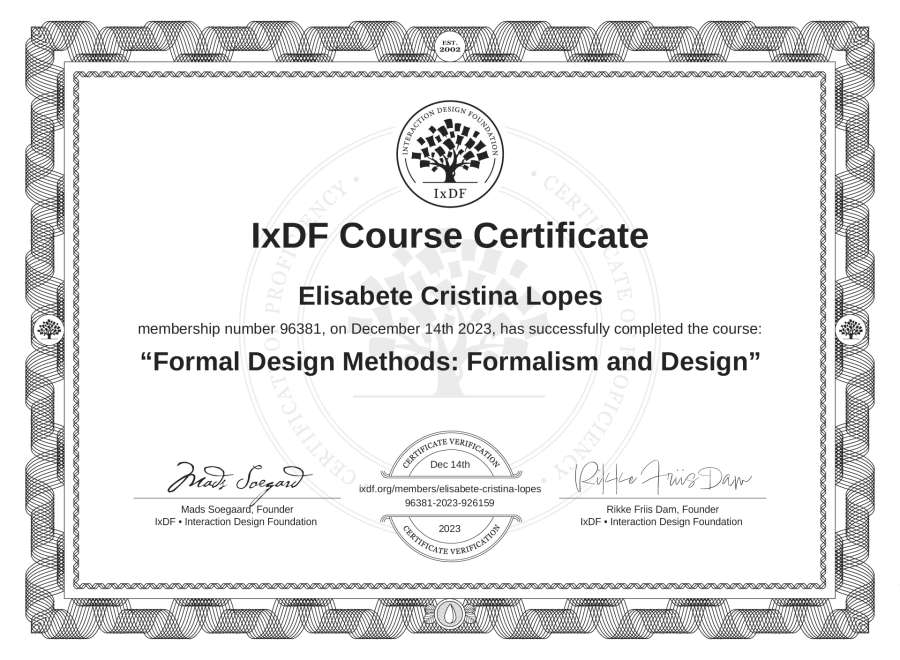 Elisabete Cristina Lopes's IxDF Course Certificate: Formal Design Methods: Formalism and Design