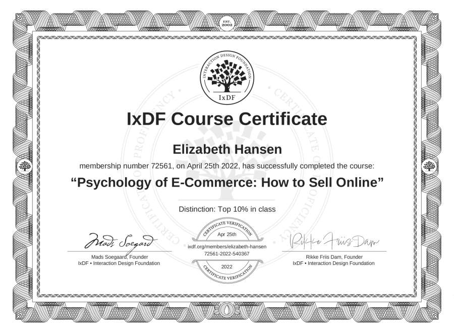 Elizabeth Hansen's IxDF Course Certificate: Psychology of E-Commerce: How to Sell Online
